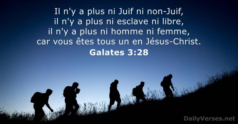 Frère, d'après l'Écriture, tout a été enfermé sous la domination du péché, et ainsi c'est l'accomplissement de la promesse qui a été donné aux croyants par la foi en Jésus Christ. Avant que vienne le temps de la foi, nous étions des prisonniers, enfermés sous la domination de la loi de Moïse, en attendant l'heure où la foi serait révélée. Ainsi, pour que nous devenions des justes par la foi, la Loi, comme un surveillant, nous a menés jusqu'au Christ. Et maintenant qu'est venu le temps de la foi, nous ne sommes plus sous la domination de ce surveillant. Car en Jésus Christ, vous êtes tous fils de Dieu par la foi. En effet, vous tous que le baptême a unis au Christ, vous avez revêtu le Christ ; il n'y a plus ni juif ni païen, il n'y a plus ni esclave ni homme libre, il n'y a plus l'homme et la femme, car tous, vous ne faites plus qu'un dans le Christ Jésus. Et si vous appartenez au Christ, c'est vous qui êtes la descendance d'Abraham ; et l'héritage que Dieu lui a promis, c'est à vous qu'il revient.