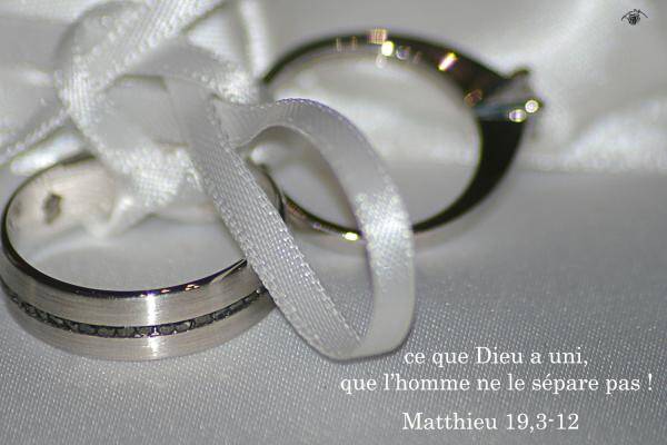 Seulement voilà, on ne peut être chrétien (c’est-à-dire suivre le Christ et pas seulement être inscrit sur un registre de baptême) à moitié. Où on suit le Christ, ou on ne le suit pas. Il faut au moins que nous soyons honnêtes avec cette vérité dans notre vie. Oh bien sur tout n’est pas noir ou blanc, il y a des domaines où nous suivons le Christ et d’autres où nous ne le suivons pas. Il y a des moments où nous suivons le Christ et d’autres non. Et cela évolue selon le cheminement spirituel et le « travail » de conversion. Le temps consacré à la prière et à la lecture (méditation) de la parole de Dieu aide grandement à ce cheminement, à cette conversion personnelle et donc permet au couple de continuer sa route.
