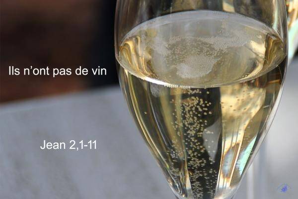 En ce temps-là, il y eut un mariage à Cana de Galilée. La mère de Jésus était là. Jésus aussi avait été invité au mariage avec ses disciples. Or, on manqua de vin. La mère de Jésus lui dit : « Ils n’ont pas de vin. » Jésus lui répond : « Femme, que me veux-tu ? Mon heure n’est pas encore venue. » Sa mère dit à ceux qui servaient : « Tout ce qu’il vous dira, faites-le. » Or, il y avait là six jarres de pierre pour les purifications rituelles des Juifs ; chacune contenait deux à trois mesures, (c’est-à-dire environ cent litres). Jésus dit à ceux qui servaient : « Remplissez d’eau les jarres. » Et ils les remplirent jusqu’au bord. Il leur dit : « Maintenant, puisez, et portez-en au maître du repas. » Ils lui en portèrent. Et celui-ci goûta l’eau changée en vin. Il ne savait pas d’où venait ce vin, mais ceux qui servaient le savaient bien, eux qui avaient puisé l’eau. Alors le maître du repas appelle le marié et lui dit : « Tout le monde sert le bon vin en premier et, lorsque les gens ont bien bu, on apporte le moins bon. Mais toi, tu as gardé le bon vin jusqu’à maintenant. » Tel fut le commencement des signes que Jésus accomplit. C’était à Cana de Galilée. Il manifesta sa gloire, et ses disciples crurent en lui.
