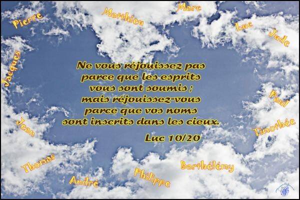 Cependant Jésus leur rappelle bien, que ce n’est pas tant de cela qu’ils doivent se réjouir, ce qui doit sans cesse réjouir leur cœur c’est d’avoir eux aussi été sauvés et donc d’avoir leur nom écrit dans les cieux, c'est-à-dire avoir accès à la vie éternelle auprès de Dieu.