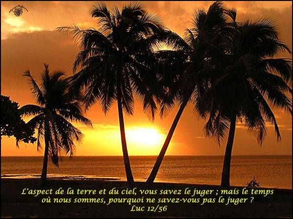 Jésus disait à la foule : « Quand vous voyez un nuage monter au couchant, vous dites aussitôt qu'il va pleuvoir, et c'est ce qui arrive. Et quand vous voyez souffler le vent du sud, vous dites qu'il fera très chaud, et cela arrive. Esprits faux ! L'aspect de la terre et du ciel, vous savez le juger ; mais le temps où nous sommes, pourquoi ne savez-vous pas le juger ? Et pourquoi aussi ne jugez-vous pas par vous-mêmes ce qui est juste ? Ainsi, quand tu vas avec ton adversaire devant le magistrat, pendant que tu es en chemin efforce-toi de te libérer envers lui, pour éviter qu'il ne te traîne devant le juge, que le juge ne te livre au percepteur des amendes, et que celui-ci ne te jette en prison. Je te le dis : tu n'en sortiras pas avant d'avoir payé jusqu'au dernier centime. »