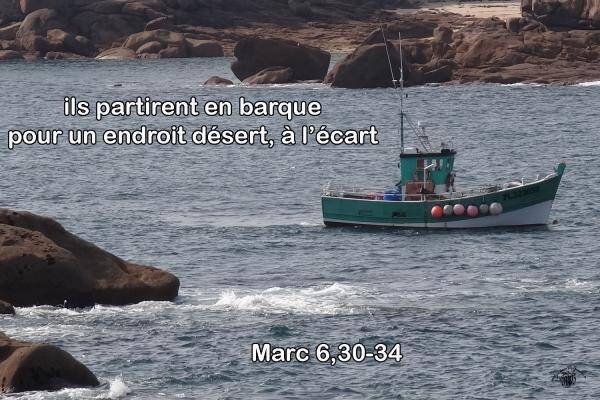 En ce temps-là, les Apôtres se réunirent auprès de Jésus, et lui annoncèrent tout ce qu’ils avaient fait et enseigné. Il leur dit : « Venez à l’écart dans un endroit désert, et reposez-vous un peu. » De fait, ceux qui arrivaient et ceux qui partaient étaient nombreux, et l’on n’avait même pas le temps de manger. Alors, ils partirent en barque pour un endroit désert, à l’écart.