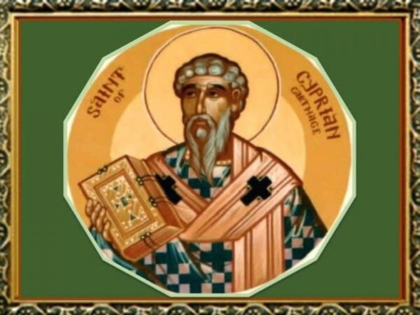 Cyprien est né à Carthage autour de l'an 200, d’une famille païenne. Touché par l'exemple et les paroles de vérité d'un saint prêtre nommé Cecil, il a été converti au Christ, a été baptisé et a passé tous ses biens pour aider les pauvres. Il a été ordonné prêtre peu de temps après et, l'année 248, a été choisi évêque de sa ville. Dans les moments difficiles, il a gouverné à bon escient son Église africaine et a travaillé dur pour l'unité de l'Église. Les «actes de son martyre" conservent le processus judiciaire, admirablement documentée, avec sa confession pacifique et courageuse ainsi que son martyre en pardonnant et en donnant au bourreau, qui l’a décapité, quelques 25 pièces d'or ...